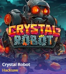 A futuristic slot featuring robotic characters and a mix of mechanical and crystal-themed symbols.